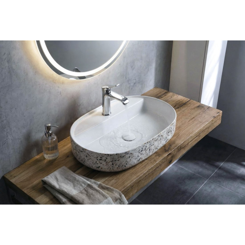 INFINITY OVAL keramické umyvadlo na desku, 60x40cm, terrazzo