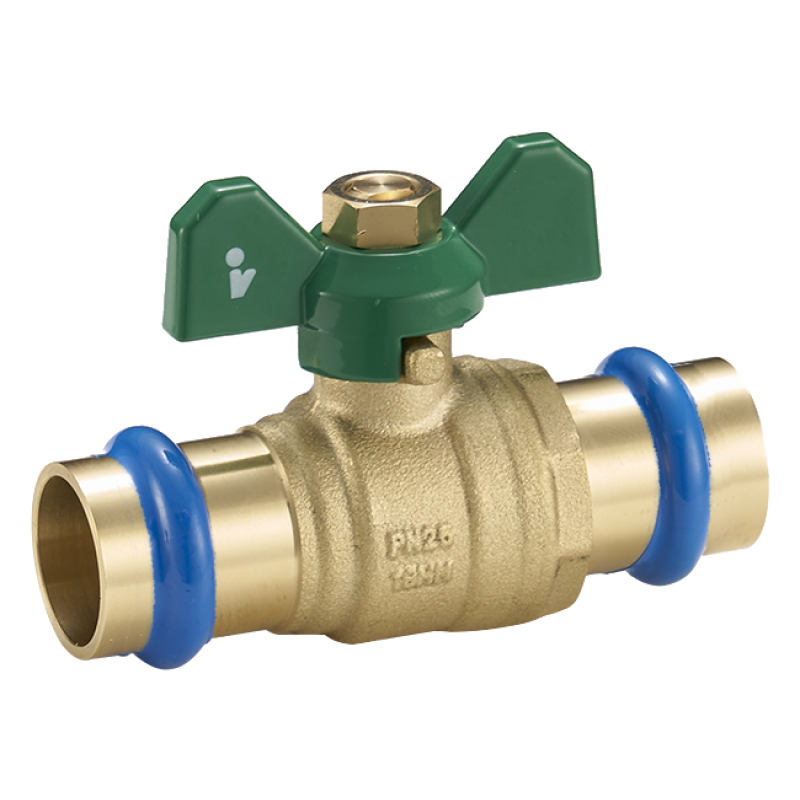 • Kulový kohout PRESS "V" 18 mm, MOTÝL, PN25, do 120°C