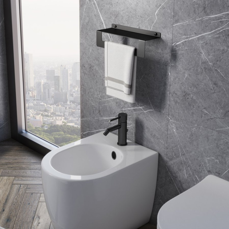 CLEO polička s držákem ručníků 300mm, černá mat