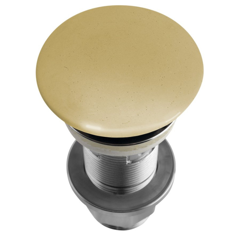 Umyvadlová výpust 5/4“, click-clack, betonová zátka, 10-80mm, žlutá pololesk