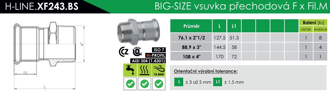 INOXPRESS BIG SIZE Přechod vnější závit 76,1mm x 2 1/2"