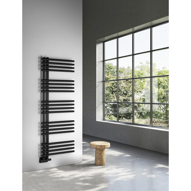 Klasické trubky s kruhovým profilem sestavené v designový radiátor, který lze díky středovému připojení s roztečí 50 mm kombinovat s designovými ventily z naší nabídky.