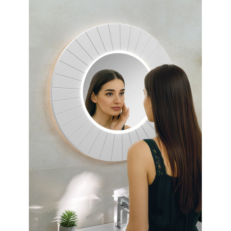 LUMIRO STRIP kulaté zrcadlo s LED osvětlením v rámu ø 75cm, bílá mat
