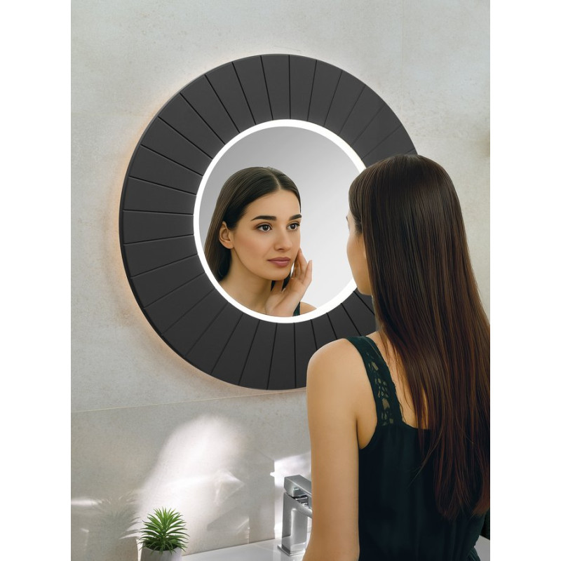 LUMIRO STRIP kulaté zrcadlo s LED osvětlením v rámu ø 90cm, carina