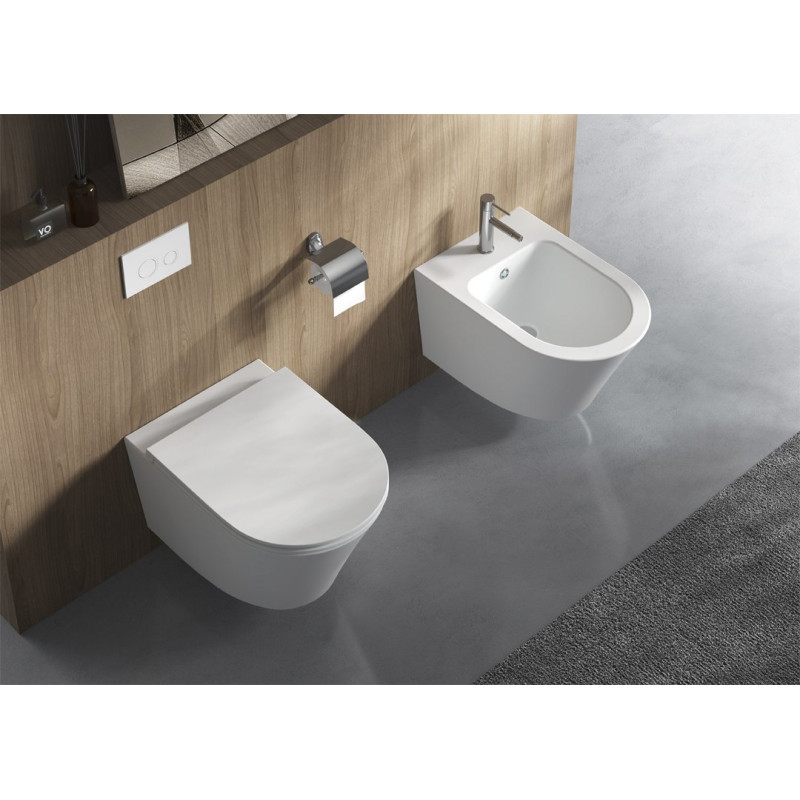 Rimless (NoRim) – toalety bez tradičního oplachového kruhu. Hladký povrch bez dutin a záhybů. Oplachová voda vytéká rozdělovačem vody pouze ze zadní části WC mísy a díky speciálnímu tvaru keramiky dokonale opláchne vnitřní prostor. Výhodou je snadná údržba a čištění WC mísy.