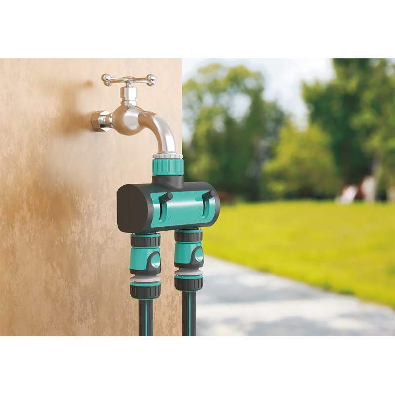 Rozdělovač FESTA AQUATIC 2-cestný je praktické zahradní příslušenství určené pro rozdělení jednoho vodního zdroje na dva samostatné výstupy. Umožňuje současné připojení dvou zahradních hadic, postřikovačů nebo zavlažovacích systémů bez nutnosti neustálého přepojování. Ideální řešení pro pohodlné a efektivní zavlažování zahrady.
