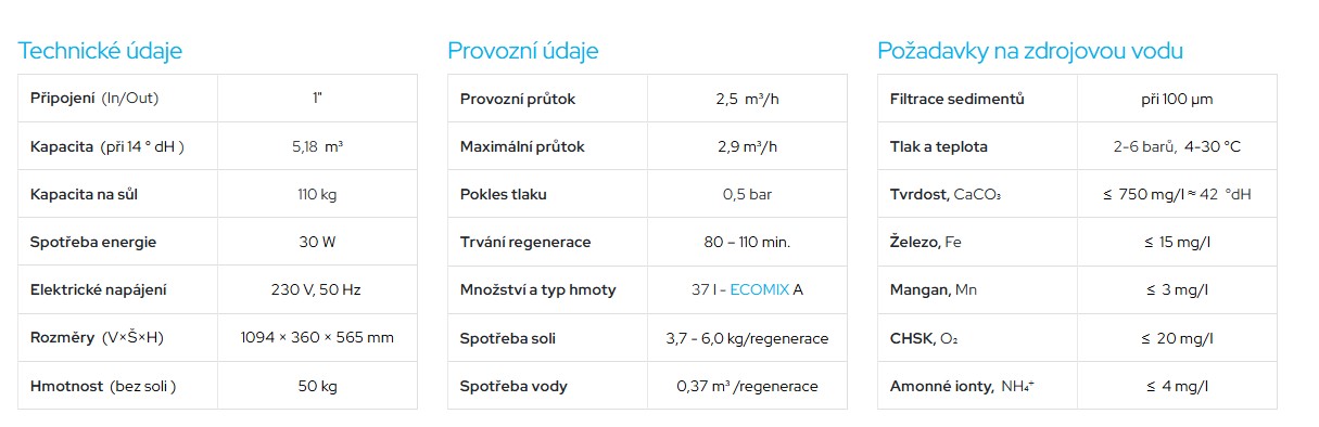 - 5 problémů – 1 řešení: tvrdost, železo, mangan, amonné ionty a organické nečistoty.