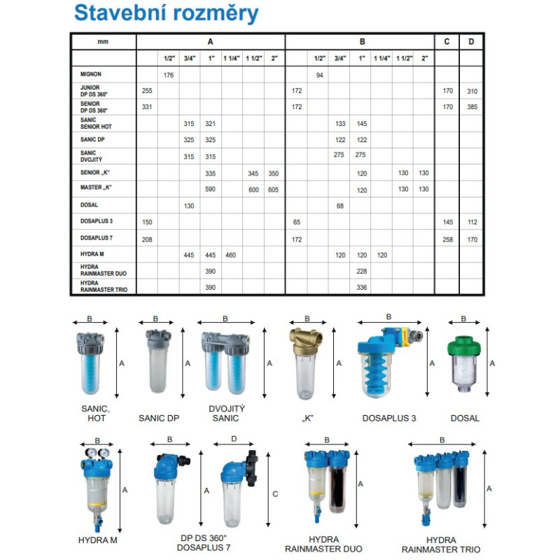 Použití filtru: HYDRA M BIG RAH je doporučen pro použití prakticky do všech objektů jako firmy, bytové domy či veřejné budovy kde je požadavek na velký průtok vody. Díky velké hodinové propustnosti vody je vhodný pro široké spektrum použití Montáž filtru: Je potřeba dbát na to aby byl filtr instalován v krytém prostředí jelikož nesmí být vystaven mrazu ani vysokým teplotám. Z důvodu ochrany filtru před tvrobou vodních řas nemá být filtr s průhlednou nádobou vystaven přímému slunečnímu záření. Rozměry filtru jsou uvedeny ve fotogalerii. Před i za filtr je vhodné při instalaci umístit uzavírací ventily přislušných rozměrů a vytvořit obtokový bypass. Toto řešní umožňujě jednoduché čištění (výměnu filtračních kartuší) při zachování přísunu vody.