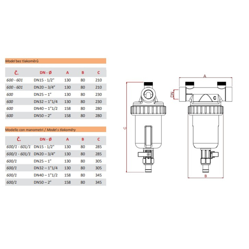 F.A.R.G. 600 Filtr s proplachem DN32 - 5/4" PN16, 400mcr, 80°C