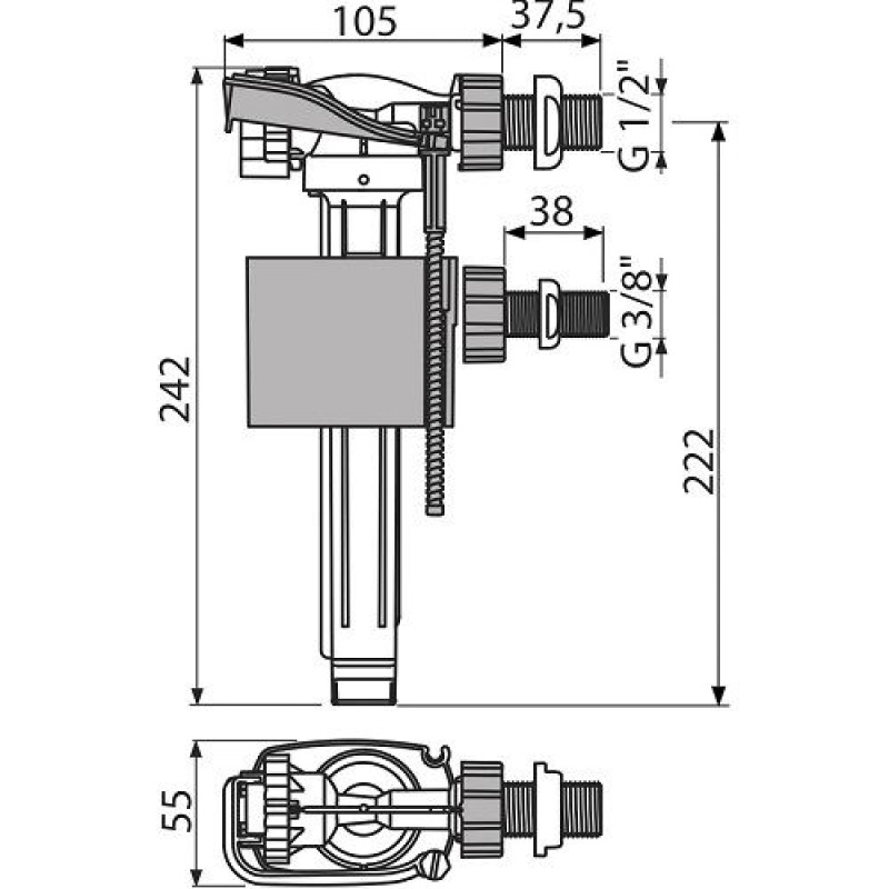 Alca plast Ventil napuštěcí s bočním závitem vhodný pro napouštění vody pro plastové i keramické splachovací nádržky, předstěnové instalační moduly