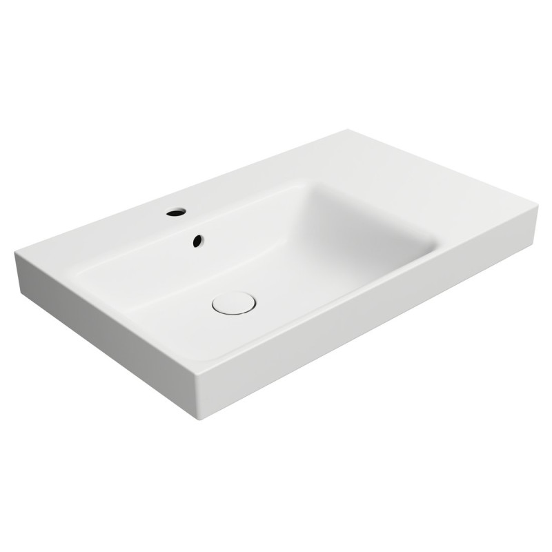 NUBES keramické umyvadlo 80x50cm, s odkládací plochou vpravo, bílá mat