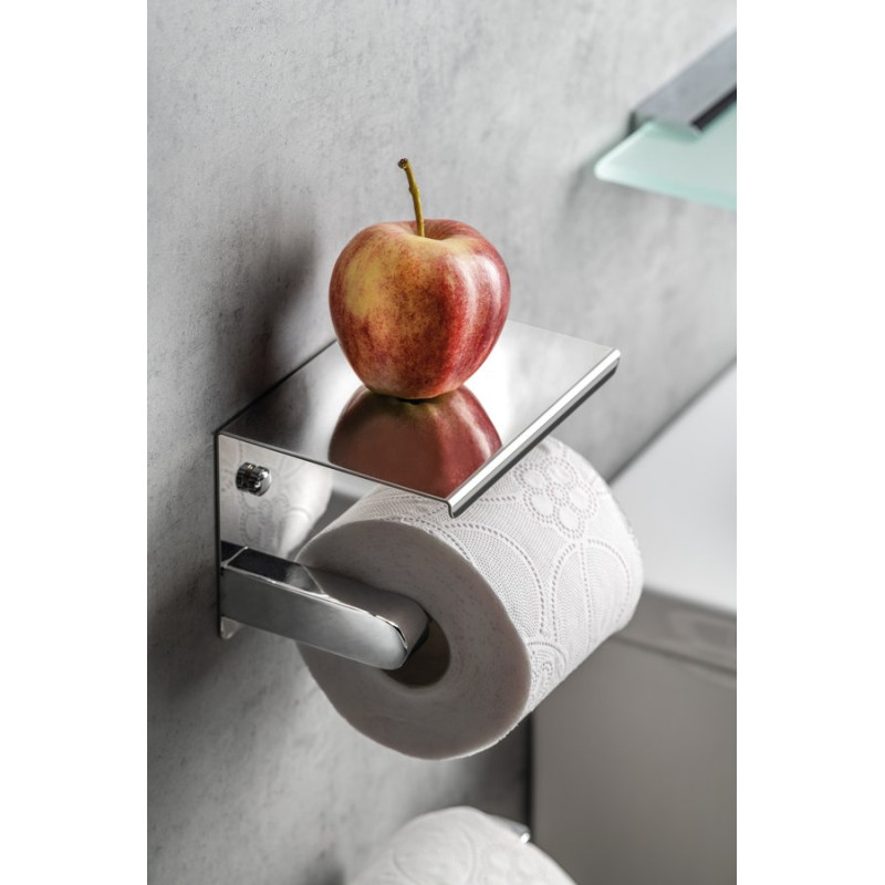 Držák toaletního papíru s poličkou, chrom