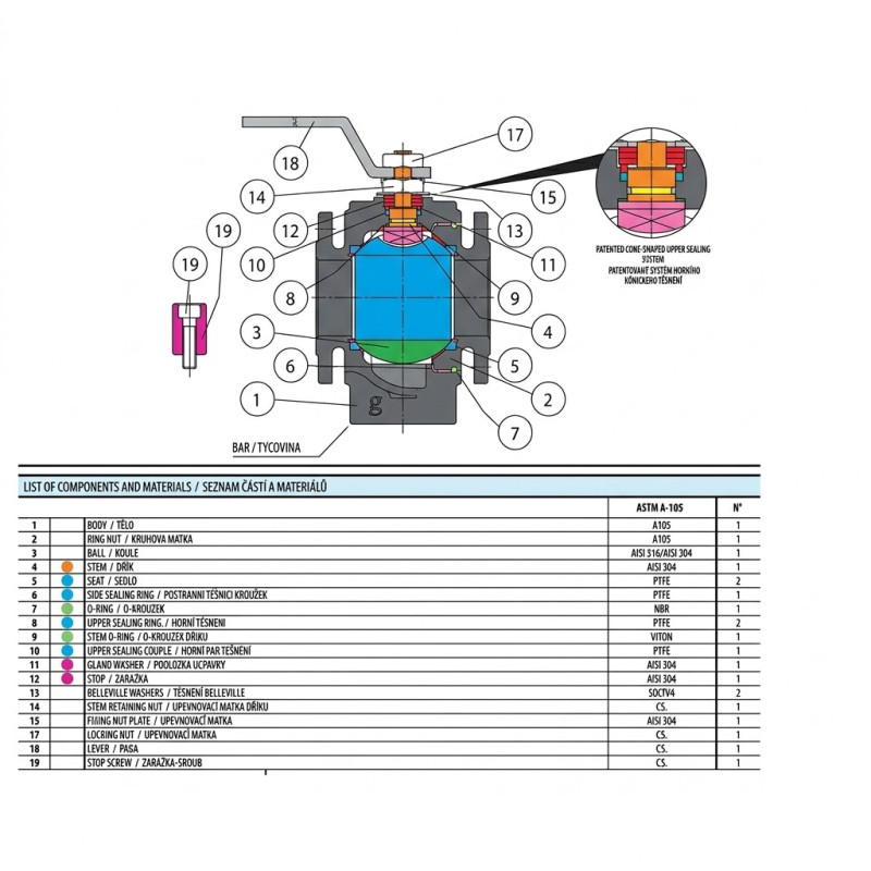 | Koule (DN 15 – DN 20) | Nerezová ocel AISI 316 |