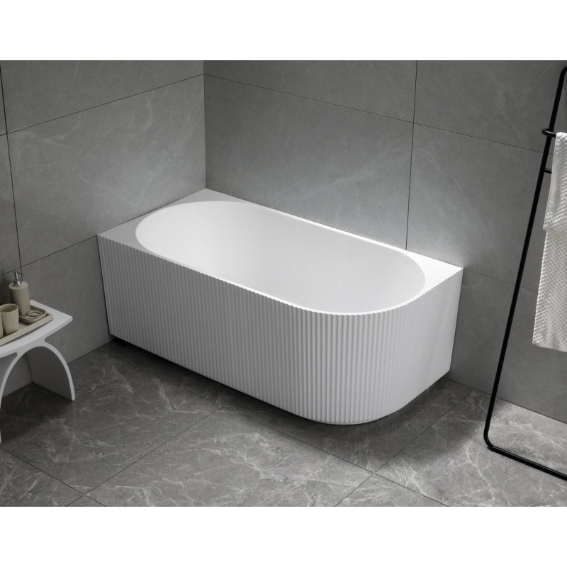 TIBERA L rohová stojící vana, 150x75cm, panel vlnky, bílá