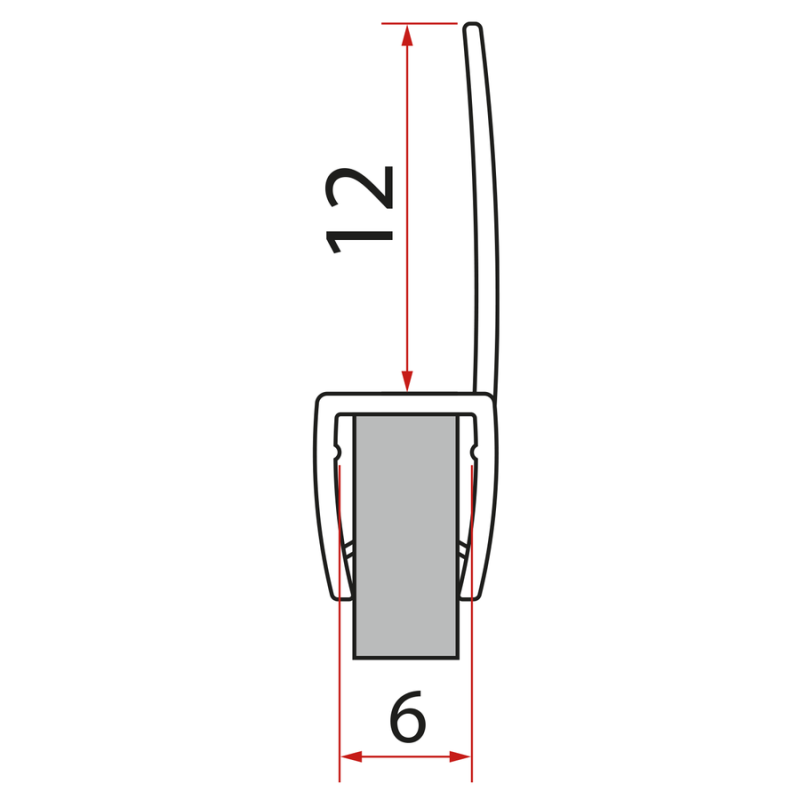 Svislé těsnění mezi skla 6mm, délka 2000mm