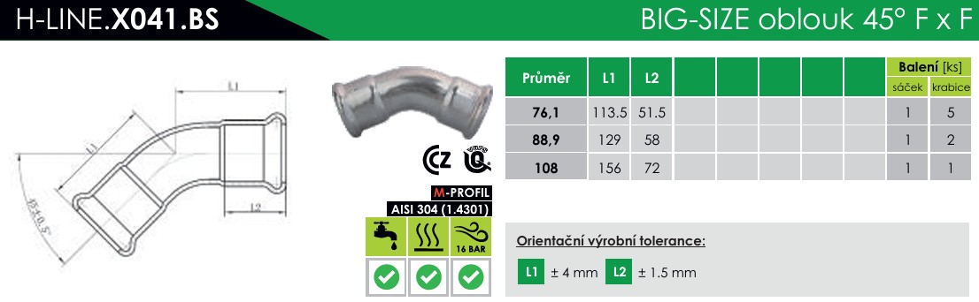 • INOXPRESS BIG SIZE oblouk 45° FxF 76,1mm