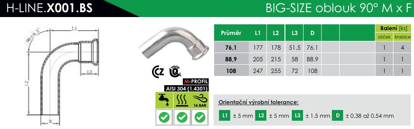 INOXPRESS BIG SIZE oblouk 90° MxF 108mm