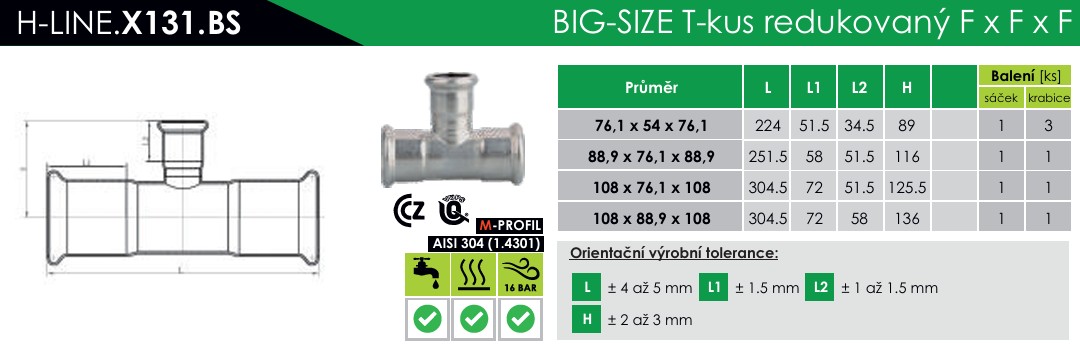 Nerezový lisovací systém H-LINE INOXPRESS 304 je vyroben z nerezové oceli AISI 304 (1.4301 dle EN) a je speciálně navržen pro použití v rozvodech topných systémů a pro rozvody vody, včetně pitné vody a požárních rozvodů. Disponuje také systémem LEAK DETECT pro včasné odhalení nezalisovaných spojů fitinek. Lisování fitinek lze realizovat pomocí čelistí s profilem „M”. Systém je plně certifikován VÚPS a splňuje veškeré hygienické požadavky.