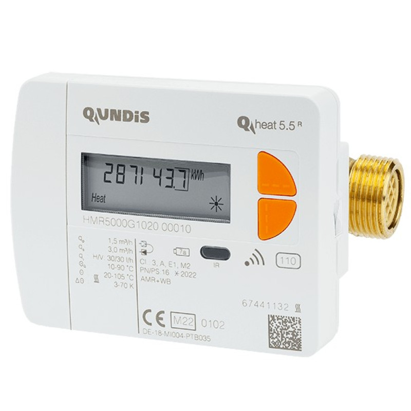 Mechanický měřič tepla QUNDIS QHeat 5.5 R je navržen pro přesné měření spotřeby tepelné energie v autonomních topných systémech. S jmenovitým průtokem 2,5 m³/h, připojením DN20 a stavební délkou 130 mm je ideální pro instalaci na zpátečku topného okruhu. Měřič zaznamenává spotřebovanou energii v GJ, což umožňuje spravedlivé rozúčtování nákladů na vytápění v bytech i komerčních objektech.