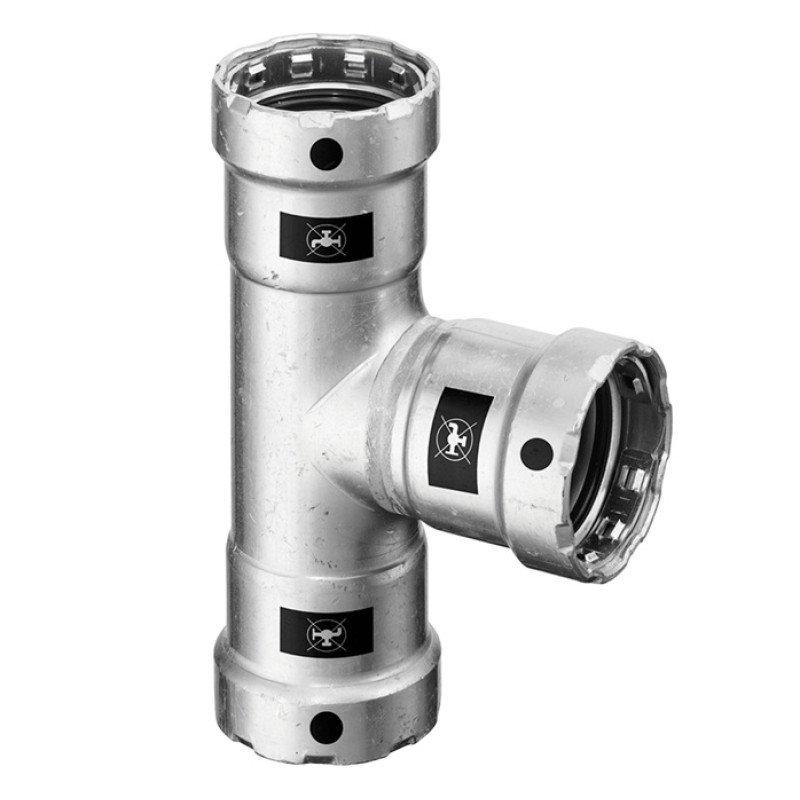 SC-Contur: Patentovaná bezpečnostní kontura na drážce spojky, která při tlakové zkoušce okamžitě odhalí nezalisovaný spoj. Po zalisování je spoj trvale těsný a bezpečný.